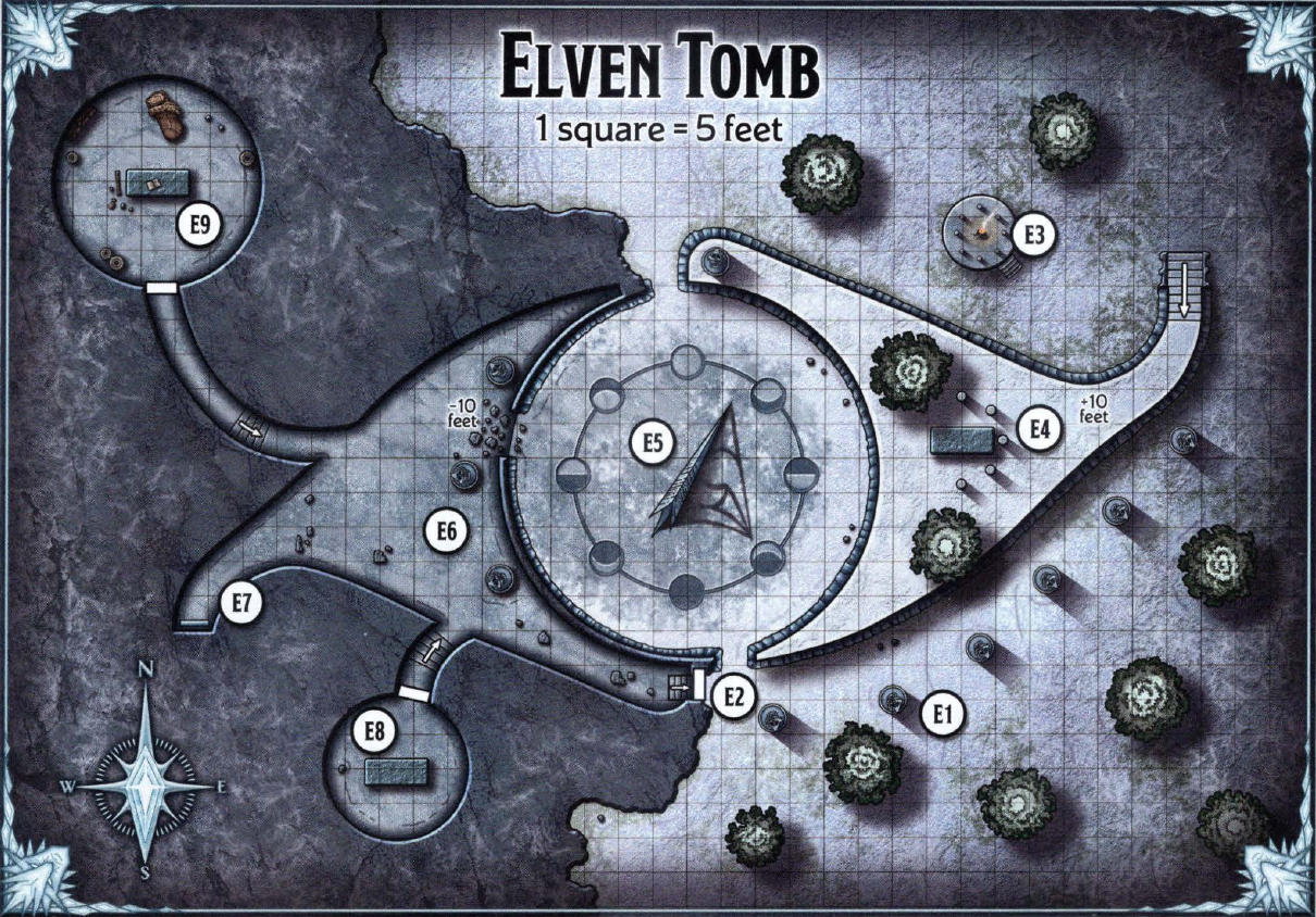 Graendel, Ratimir, and Sanhar packed up and headed south for Termalaine to get a head start researching the mysterious chambers at the bottom of the mine. Harvan, Anatol, Ligs, Ziff, and Glik decided to ride their axe beaks north through the Lonelywood to find the Black Cabin and the hermit mentioned by Nimsy Huddle. Along the way, they found one of the mummies missing from the elven tomb slumped against a tree. Only its footprints, leading back to the approximate location of the barrow, were visible in the snow.